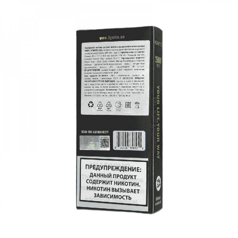 Электронная сигарета Ignite V250 Gold 25000 - Grape Ice (Виноград лёд) - купить в Осе
